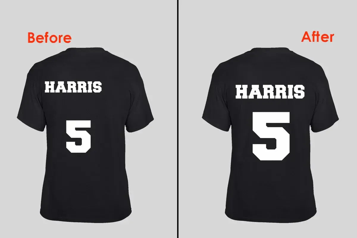 Corregimos imágenes de baja resolución, inconsistencias de color, pixelación y formatos de archivo incorrectos , garantizando diseños nítidos y precisos para camisetas , sudaderas y uniformes de equipo personalizados.