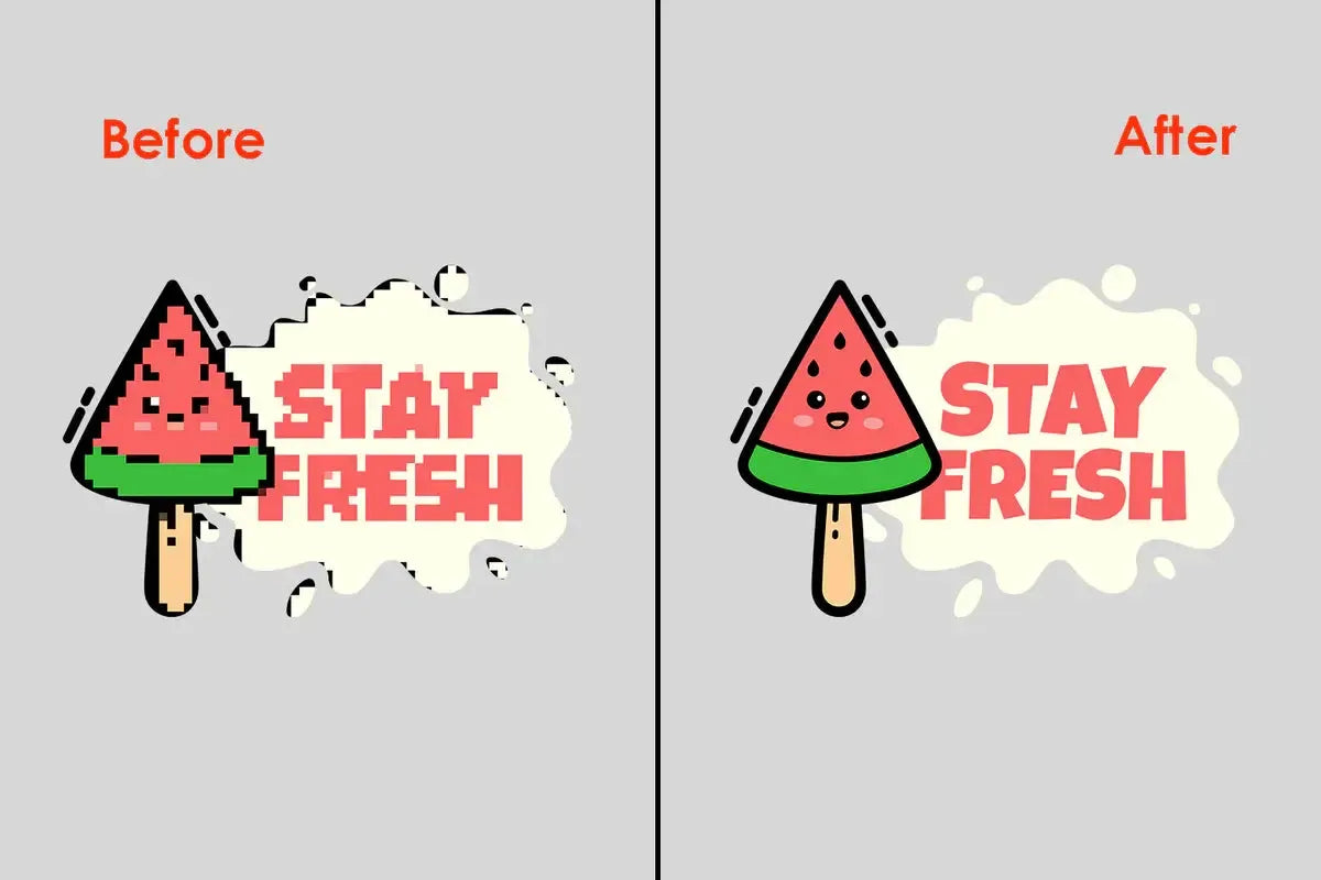 Las imágenes de baja resolución pueden arruinar un gran diseño. Nuestro servicio de corrección de pixelado mejora los gráficos borrosos o de baja calidad, garantizando impresiones nítidas y definidas en camisetas , sudaderas y camisetas deportivas personalizadas. Refinamos y suavizamos los bordes, haciendo que su diseño sea perfecto para la impresión DTG y la impresión de camisetas con prensa térmica .